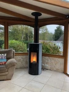 Le poêle à granulés de bois est un système de chauffage tout à fait adapté à une véranda.